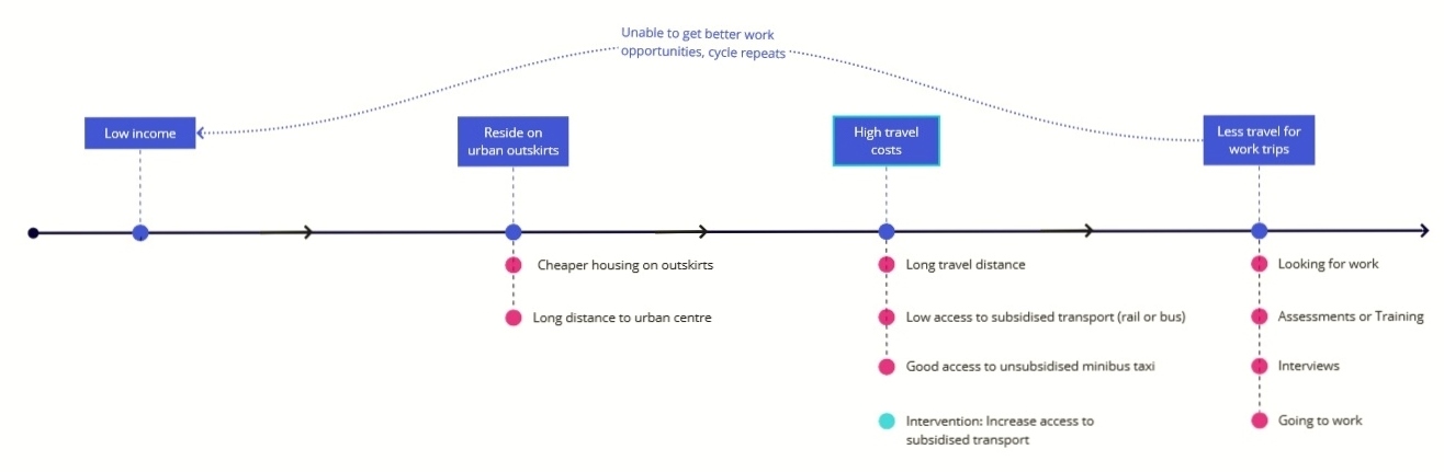 This research project explores the themes of transport affordability and access to work opportunities for low-income communities in Cape Town, South Africa. Given the high levels of unemployment in these communities, this research explores the impact of travel costs on the ability to access work opportunities. The research explores to what extent low-income communities can access public transport modes which have government subsidised fares.